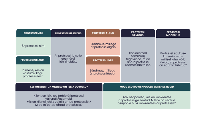 • kaardistatud protsesside haldamine – protsessi omanik, protsesside pidev seire (KPI-d) ja uuendamine, protsesside muudatusvajaduste sisse viimine.